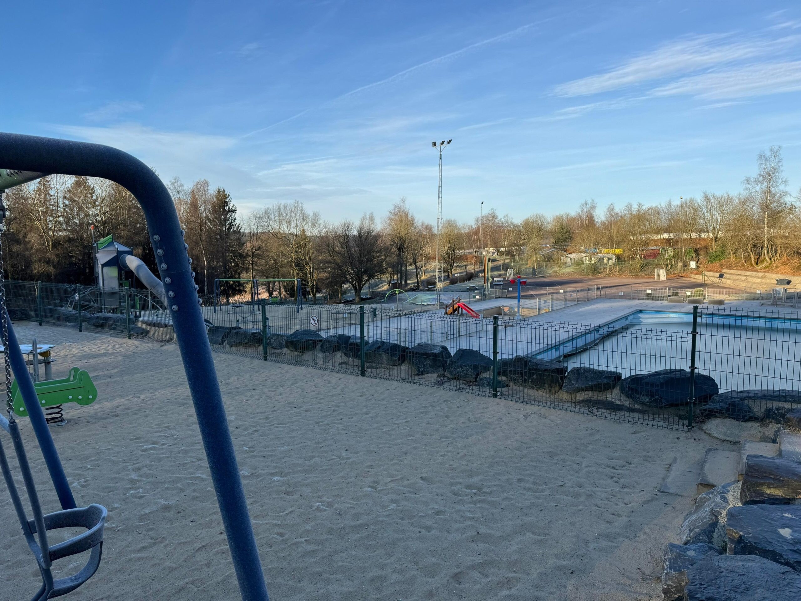 Over the past few days, winter has made its appearance in the Ardennes, and it is very noticeable at our campsite! The persistent cold has turned the campsite into a fairytale winter wonderland. A thick layer of frost adorns the trees, the grass glistens in the morning sun and small frozen pools of water complete the landscape.
